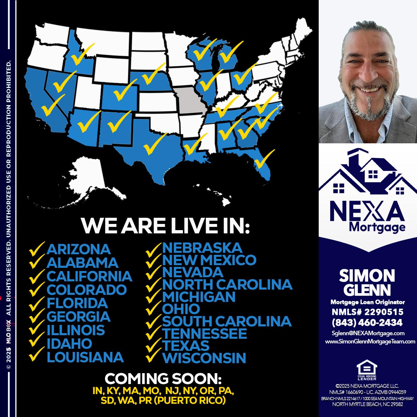 Hi, my name is Simon Glenn. I’m a Loan Officer with NEXA Mortgage LLC., offering personalized mortgage solutions, fast customized quotes, great rates and service with integrity.