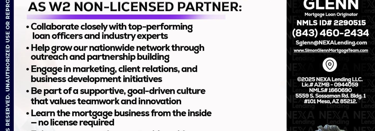 Hi, my name is Simon Glenn. I’m a Loan Officer with NEXA Mortgage LLC., offering personalized mortgage solutions, fast customized quotes, great rates and service with integrity.