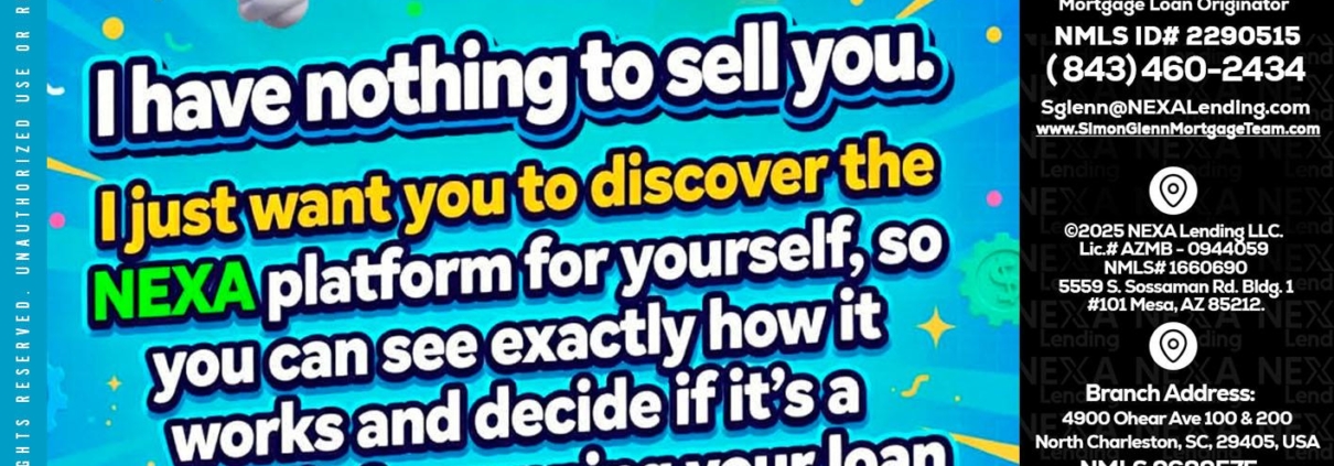 Hi, my name is Simon Glenn. I’m a Loan Officer with NEXA Lending LLC., offering personalized mortgage solutions, fast customized quotes, great rates and service with integrity.