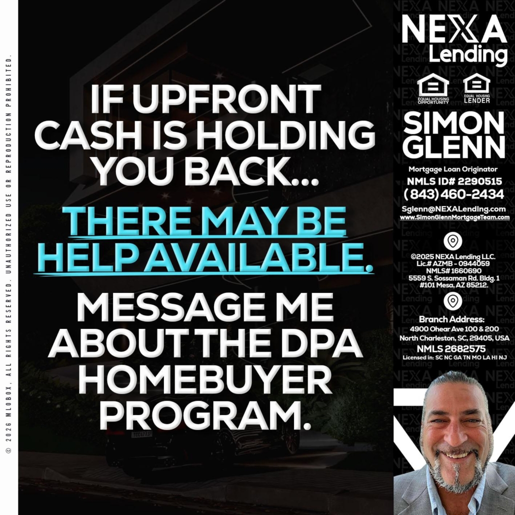 IF UPFRONT - Simon Glenn -Mortgage Broker Loan OriginatorHi, my name is Simon Glenn. I’m a Loan Officer with NEXA Lending LLC., offering personalized mortgage solutions, fast customized quotes, great rates and service with integrity.