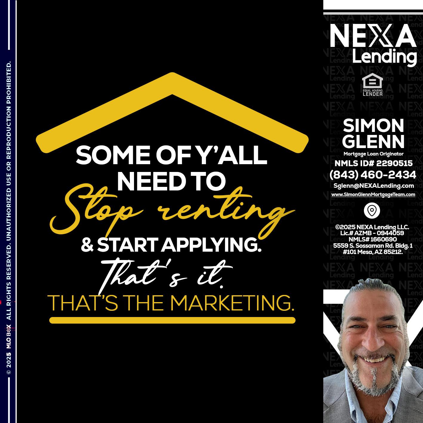 Hi, my name is Simon Glenn. I’m a Loan Officer with NEXA Mortgage LLC., offering personalized mortgage solutions, fast customized quotes, great rates and service with integrity.